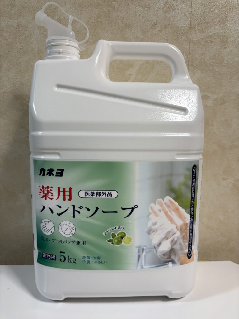そんな時、旦那がAmazonで見つけてポチッとしてくれたのが、この「カネヨ薬用ハンドソープ 5kg」です。