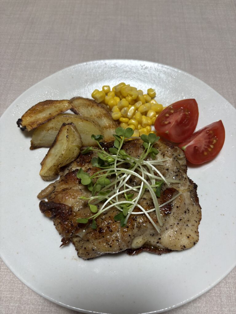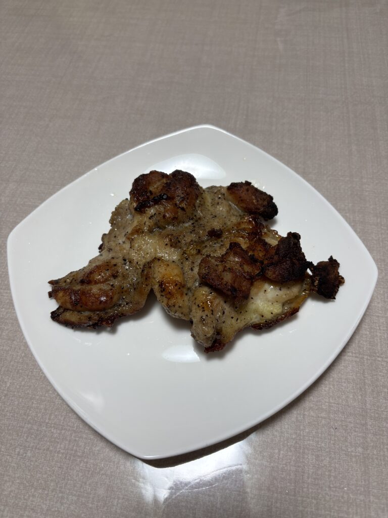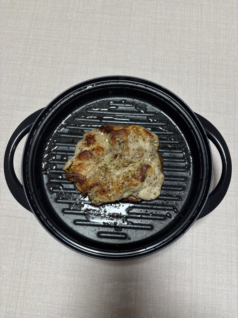 1枚目が大成功だったので、家族の分として続けて2枚目を焼くことにしました。プレートに残ったチキンの脂を見て、「これ、そのまま焼いた方が旨味が出て美味しいかも!✨」と、脂を拭き取らずにそのまま2枚目を投入。